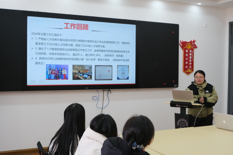 接着,会计、商贸和航旅教研室负责人对各教研室2024年的工作成果进行了汇报,对2025年工作计划进行了展望,包括科研项目申报、论文发表、指导学生竞赛、学生考证等工作。