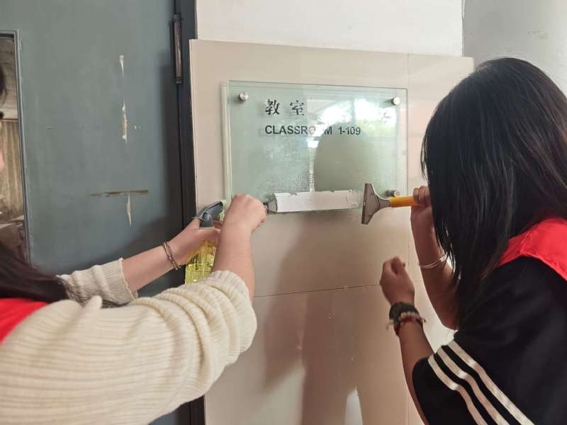 表彰会结束后,同学们热情不减,积极响应号召,参与校园清除“牛皮藓”活动。大家手持工具,认真清理教学楼、宿舍区等各处的违规张贴物。经过数小时的努力,校园面貌焕然一新,更加整洁美观,同学们也深刻体会到了劳动的意义与价值。相信在未来,震旦学子将继续以劳动为笔,书写文明校园建设的新篇章。