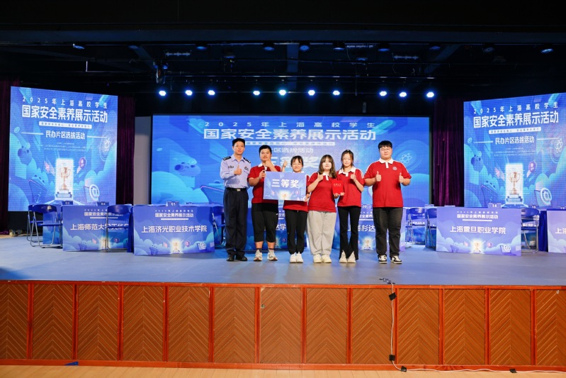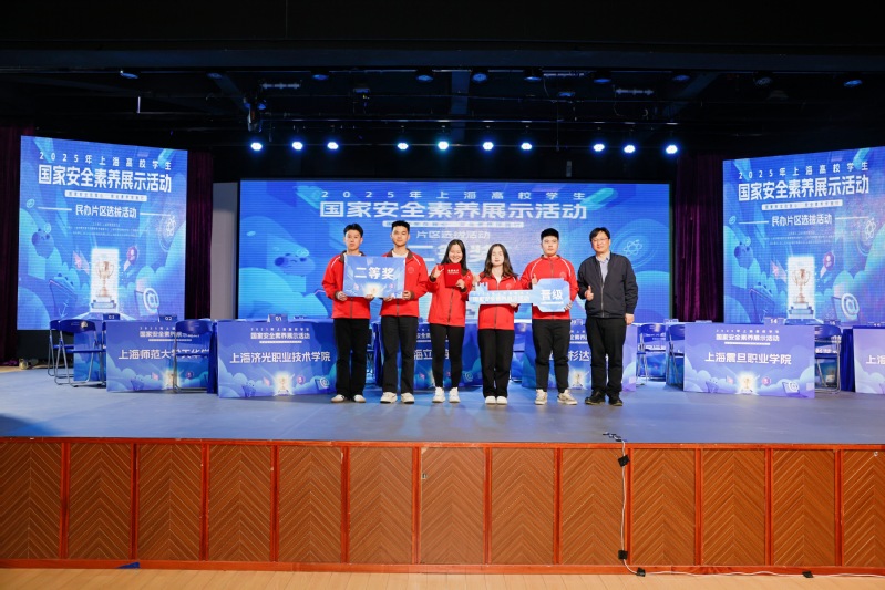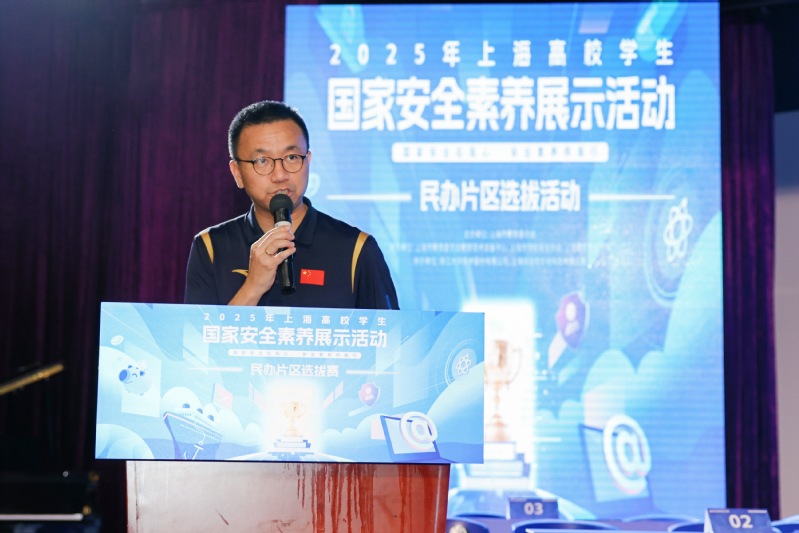 最后,上海市教育委员会学校后勤保卫处副处长黄峰讲话。他肯定了各校代表队的精彩表现,并指出,国家安全是安邦定国的基石,尤其是作为改革开放前沿的上海,面临传统与非传统安全交织的挑战,青年一代需进一步提升国家安全素养,希望各高校以此次活动为契机,深化安全教育,探索具有上海民办高校特色的安全育人品牌,为维护国家安全汇聚力量。