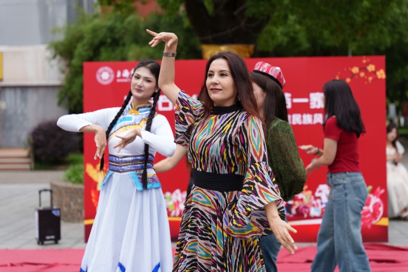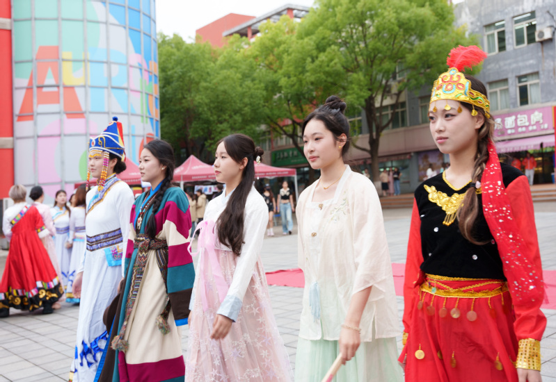 本次活动通过实物展示、服装秀、歌舞表演、互动体验等,展现各民族文化的独特魅力。活动现场设置了八个民族特色摊位,汉族、回族、维吾尔族、哈萨克族、白族、傣族、壮族、藏族、蒙古族、锡伯族、满族、朝鲜族、土家族、畲族、纳西族、祜族和佤族等17个民族的师生汇聚一堂,展示剪纸艺术、特色美食、民族风格画、民族舞蹈等,并提供手工饰品制作、学跳民族舞、乐器体验、葡萄干制作、品尝奶茶等体验活动,营造了“多元融合、民族同心”的校园文化气氛。