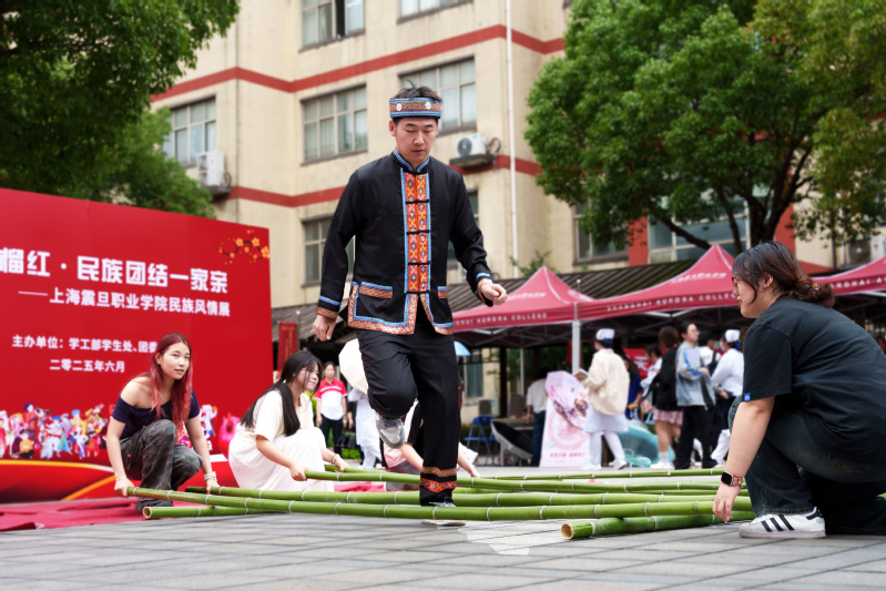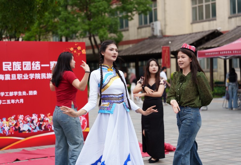 为深入贯彻落实党的二十大精神,深化民族团结教育,增进师生对各族文化的了解,共筑中华民族共同体意识,2025年6月11日,由学工部、团委、派驻办主办的“震旦石榴红·民族团结一家亲”民族团结主题教育活动在校园文化广场隆重举行。董事长张沈、校长蒋心亚、副校长王纯玉等领导与数百名师生沉浸式体验民族文化。