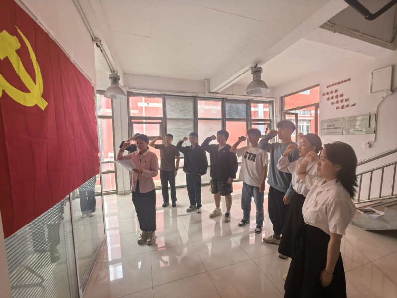 经支部大会充分讨论并以无记名投票方式进行表决,一致同意接收杨斌等8名同志为中共预备党员。在党支部书记张海琳老师的带领下,新发展的预备党员面向党旗庄严宣誓。