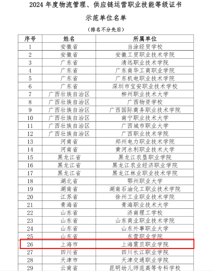 近日,北京中物联物流采购培训中心公布了2024年度物流管理职业技能等级证书先进单位名单,我校荣获2024年度物流管理职业技能等级证书“示范单位”。