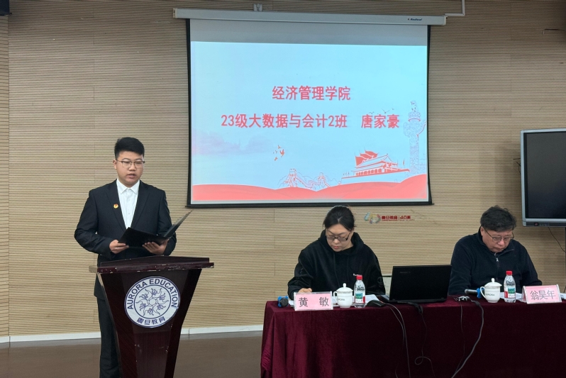 经济管理学院23级大数据与会计2班唐家豪作为培训班学员代表发言。他表示,成为发展对象是党组织的认可,将以党员标准要求自己,并倡议全体学员珍惜机会、严守纪律、知行合一,结合专业锤炼本领,助力国家发展。