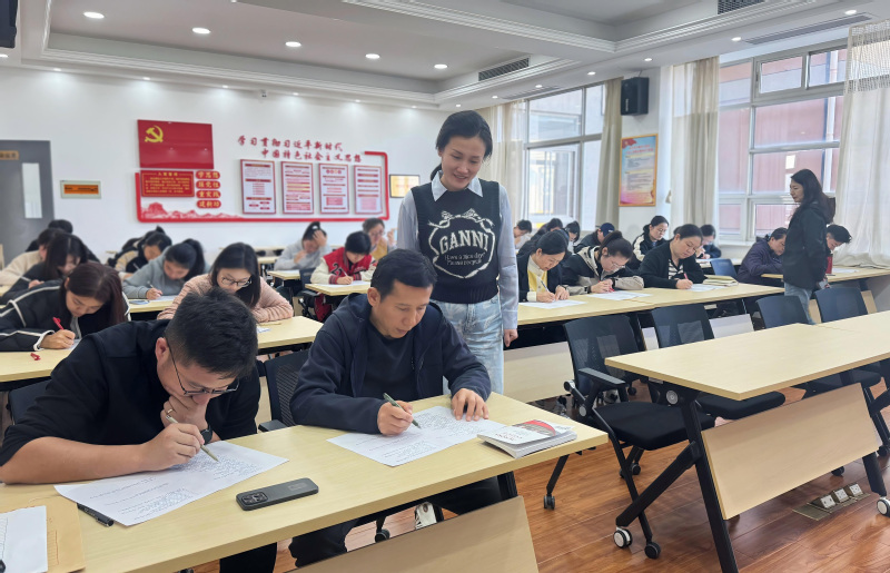 首场比赛以笔试(闭卷)方式进行,试题内容涵盖思想政治教育、心理健康教育、就业指导、党团建设等多领域,主要考察辅导员的应知应会、知识储备和处理实际问题能力。本轮比赛后,得分前12名的辅导员将晋级复赛,进行下一轮角逐。