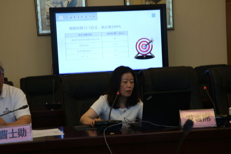 2018年5月17日,上海市交通职业技术学院院长徐辉、工艺美术职业学院副院长蔡红、上海电机学院高职学院院长付晓刚、上海城建职业学院副院长郭洪涛、原应用技术大学基建处处长张静芬、上海市教育评估协会杨景涛、上海市教委财资中心副主任王纾然,来我校进行2017年专项资金项目结项检查工作。校长陈力华、校长助理张佩莉、调研员曹士勋、财务处处长成耀、校办主任张莉、校办副主任廖文文以及专项资金项目负责人参加了结项工作检查。