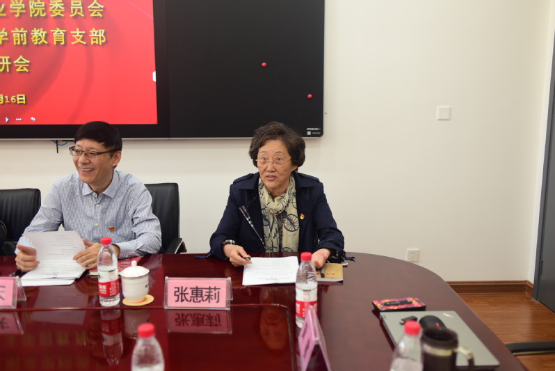 首先,教育学院党总支副书记杨彦琛同志汇报了教育学院党总支关于“不忘初心、牢记使命”主题教育学习与落实情况:党总支结合学院和学前教育专业特色,紧抓主题教育和思政课程主线,在党员师生中开展“教育者的初心”主题学习,邀请民主党派管理副院长、师生入党积极分子一起参加,要求师生党员结合实际学原著、学党史、学国史,坚守“教育者的初心”,打造“未来教育者的初心”,开展形式多样的学习与主题交流活动,组织党员进行线上与线下学习分享和交流。教育学院党总支对学前教育党支部专题调研,在调研中找问题、找短板、找差距,并通过后期的探讨制定整改措施,来促进学前教育专业的建设和发展。