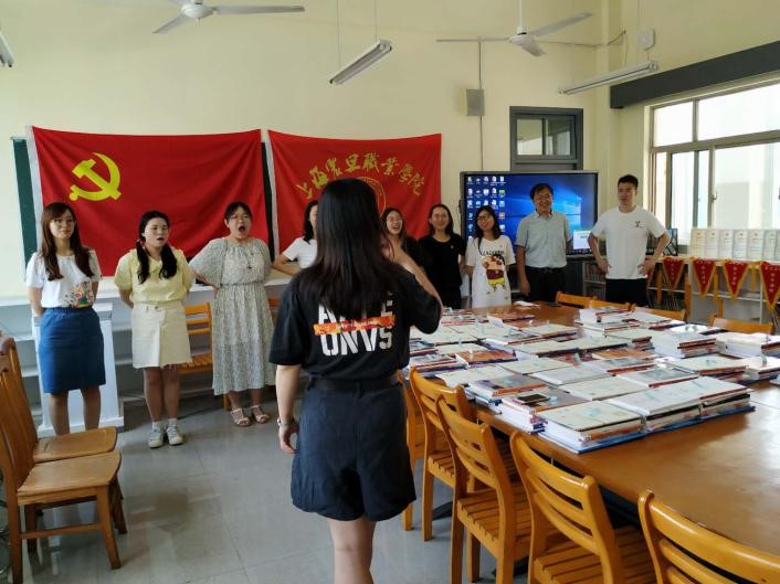 为深入学习贯彻习近平总书记关于学习党史、新中国史、改革开放史、社会主义发展史的有关讲话,根据我校党委《实施方案》的指导思想与要求,为进一步加强教育学院全体师生党员学好“四史”,深刻认识红色政权来之不易、新中国来之不易、中国特色社会主义来之不易,是历史的结论、人民的选择。2020年6月2日教育学院党总支组织我支部师生党员、入党积极分子开展“同唱一首歌”主题党日活动,学习合唱爱国歌曲《没有共产党就没有新中国》,希望通过采取形式多样、青年学生喜闻乐见的学习方式,利用好网络直播平台。活动当天,在现场学习与合唱的同时,我支部也通过腾讯会议平台进行直播,以此扩大学习教育参与人数,做好教育学院多样化的爱国主义教育。