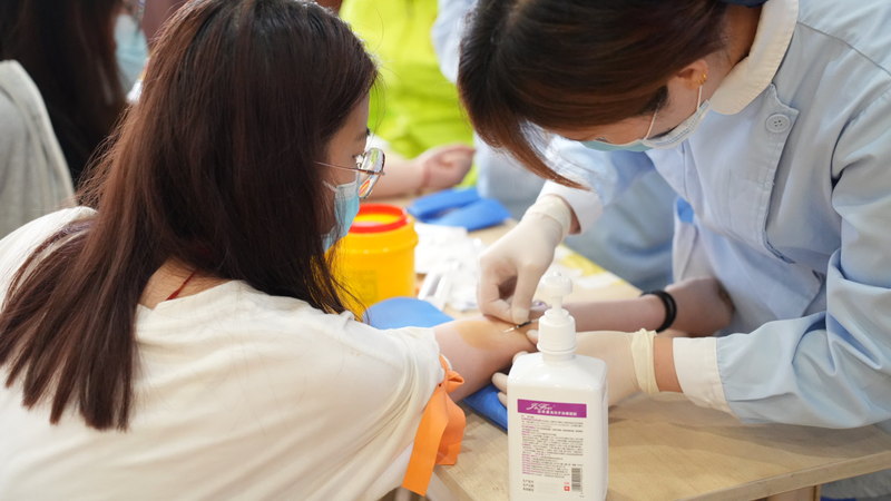 在采样过程中,虽然伴有轻微的疼痛,但志愿捐献的同学们表现出的却是无私奉献的喜悦,体现出了同学们无私的爱、奉献精神和敢于担当的精神。活动现场,医务室老师和辅导员全程陪同,保驾护航,更有辅导员以身作则,积极加入捐献队伍。